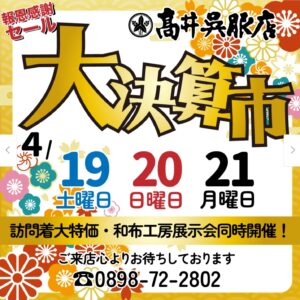 日一日と温かくなってました。 高井呉服店では、報恩感謝の大決 …